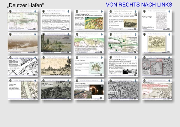 Diese Tafeln wurden anläßlich des Hafenprojektes Deutzer Hafen neu gestaltet und sind auch als Großflolien für mobile Ausstellungen (zur Zeit nur 4, Rest in Planung) verwendbar: